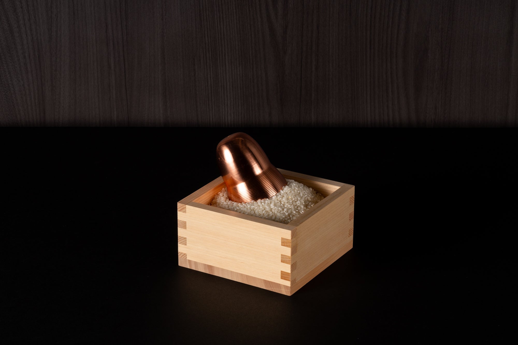 仕上げはあえて無塗装としました。ただそのままだと銅はすぐに変色してしまう。そこで変色を緩やかにしつつ、銅の効能を活かすために米油を塗布し乾拭きで仕上げました。ジーンズのように使うたびに少しづつ変化していく様子を楽しめます。2サイズ用意し、精白米と無洗米の両方に対応可能に。二種で正味量が変わるため1合の容量が10ml違います。あえて外観形状も変えることで選ぶ楽しさが増えました。