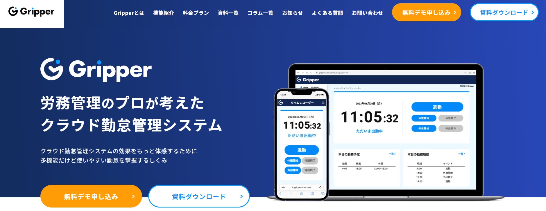 クラウド勤怠管理システム「Gripper(グリッパー)」は労務管理のプロである特定社会保険労務士が考えたクラウド勤怠管理システムです。