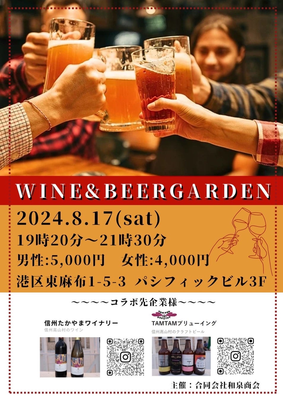 ワイン&ビアガーデン!第4回美酒コラボイベント!合同会社和泉商会が信州たかやまワイナリー様のワイン、高山村農業醸造技研様のクラフトビール「TAMTAMブリューイング」で地域活性のイベントを開催!