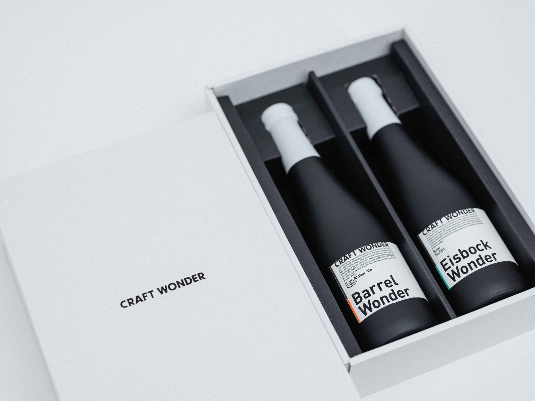 「Barrel Wonder No.001 Amber Ale」と「Eisbock Wonder No.001」が1本ずつ入っている、ギフトボックス商品です。オリジナルの手提げ袋がついています。