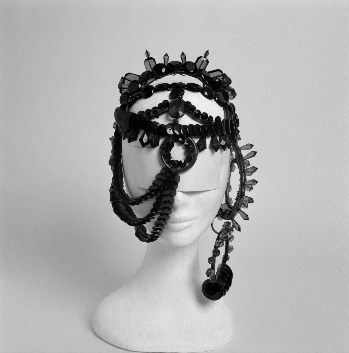 加茂克也が関わったANREALAGEのショーで、実際に使われたヘッドピースを身に纏ったモデルがランウェイを歩きます。