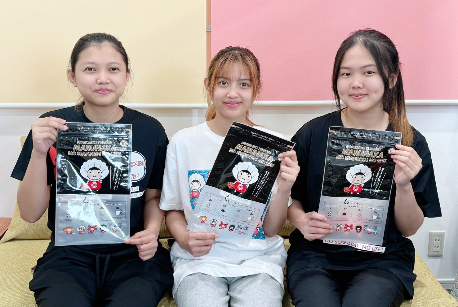 外部のデザイナーに頼ることなく、社内で独自に作成したキャラクター「シーフードボーイズ from 北海道湧別」のパッケージを採用。アップサイクルの象徴として、ゆるキャラ6体は私たちの生活の一部になっています。