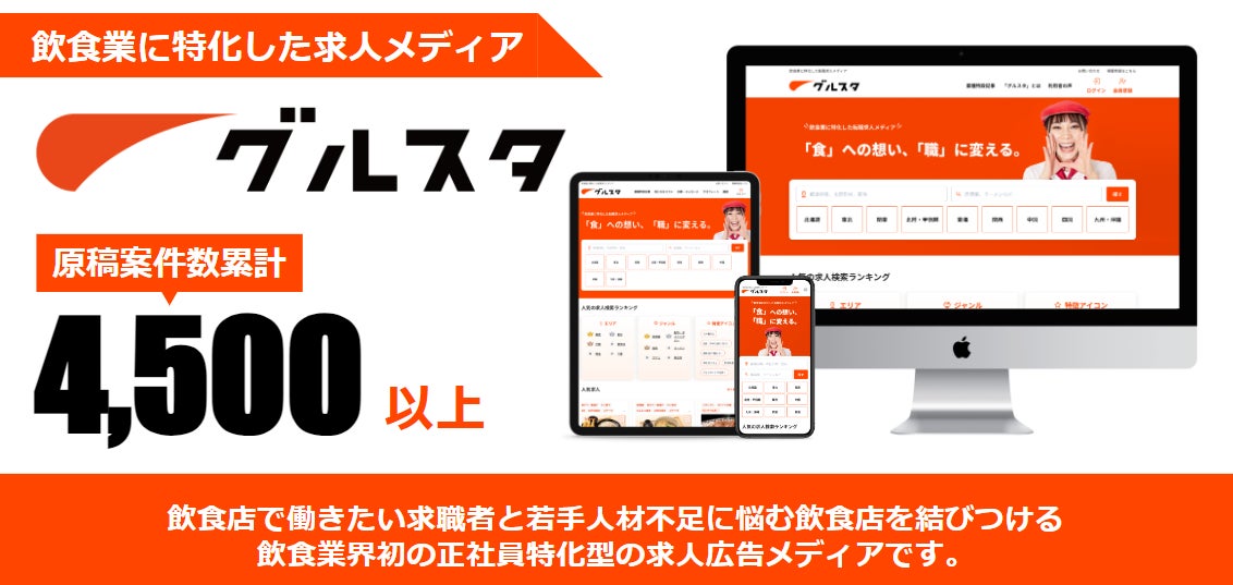【飲食業の正社員特化転職求人サイト グルスタ】