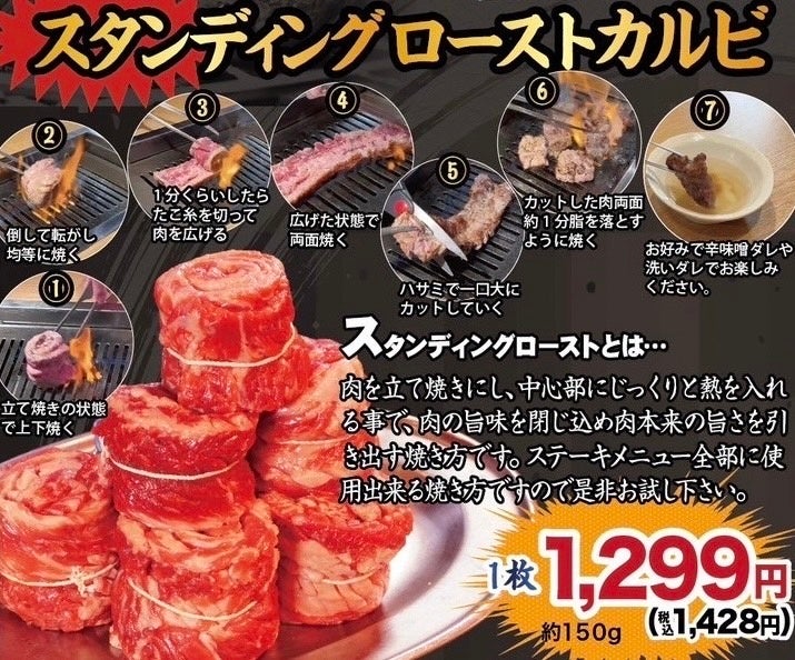 【焼肉ホルモンやまだ】こんな焼き方見たことない!?スタンディングローストカルビ初登場!!「ステーキ祭り」9月23日(月)まで開催中!