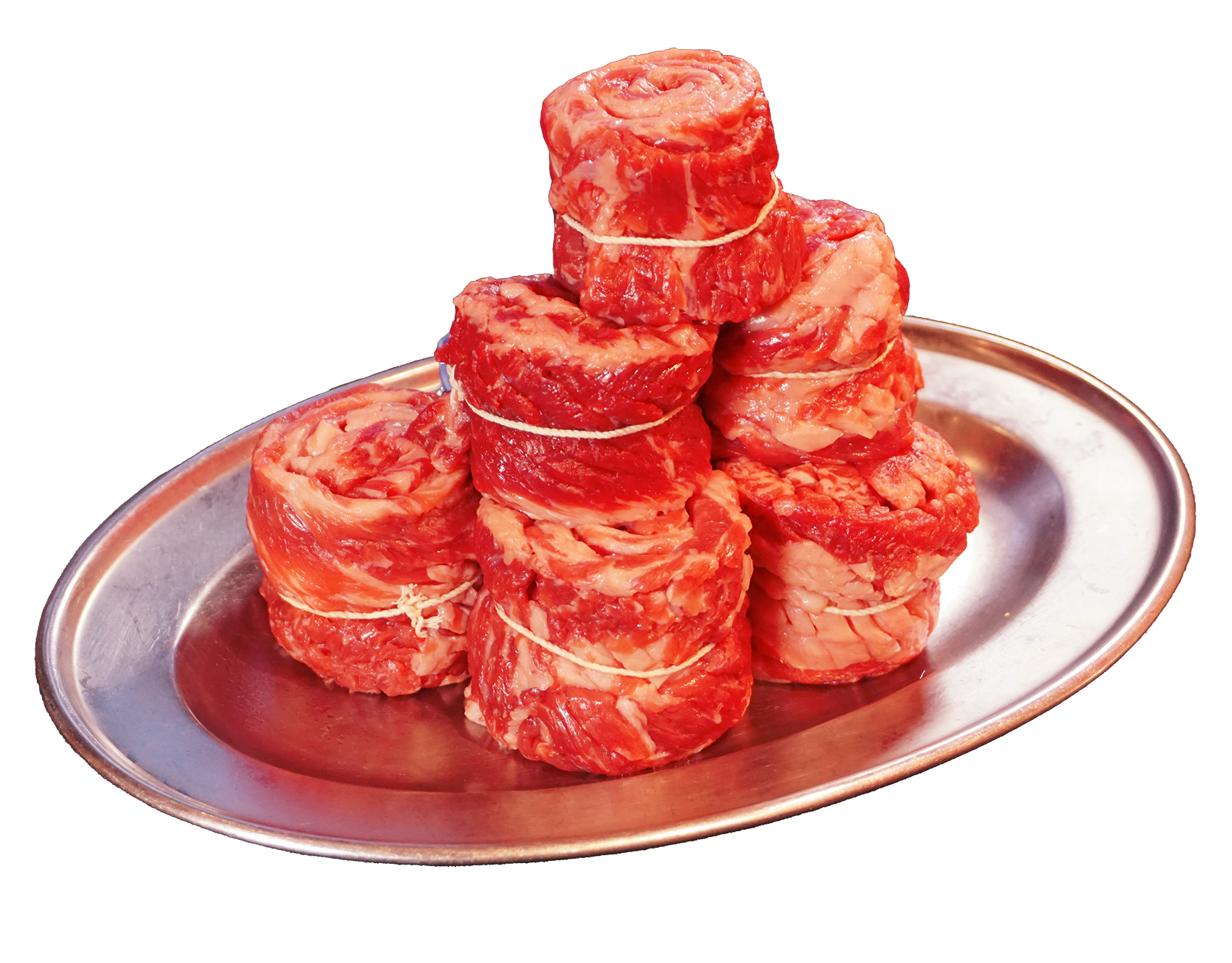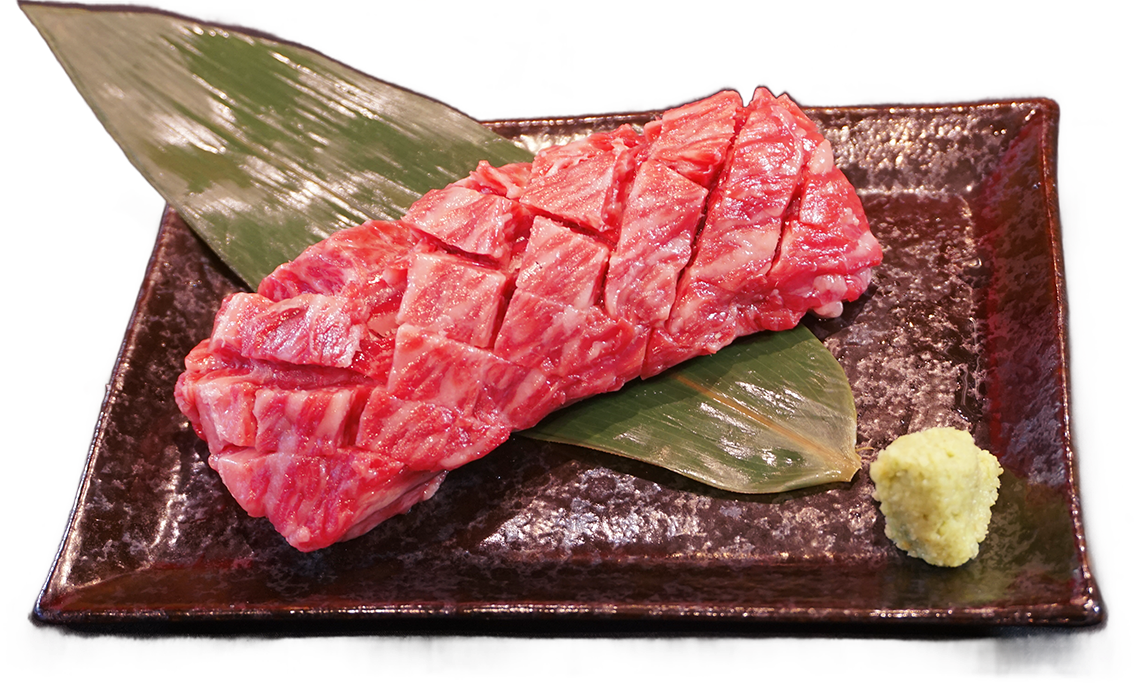1枚カルビを立てた状態で、旨味を閉じ込めながらじっくり焼いて下さい!綺麗な霜降りからジュワリとあふれ出す脂が絶品!この焼き方にしかできない味わいに納得すること間違いなし!満足するまで食べても、すぐに食べたくなる一品です。