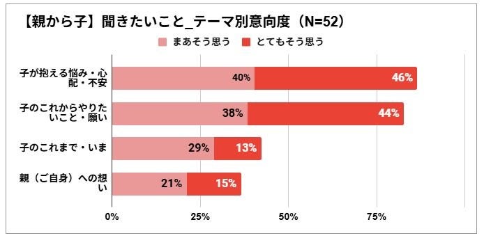 <親から子>へ聞きたいことの第1位は「不安・悩み・心配」で86%、2位は僅差で「これからの願い」で82%