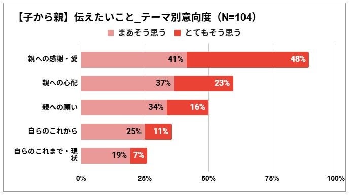 <子から親>への伝えたいことの第1位は「愛・感謝」で89%