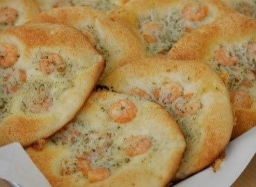 国産米粉生地の上に神奈川県産しらすとエビのアヒージョをトッピング。