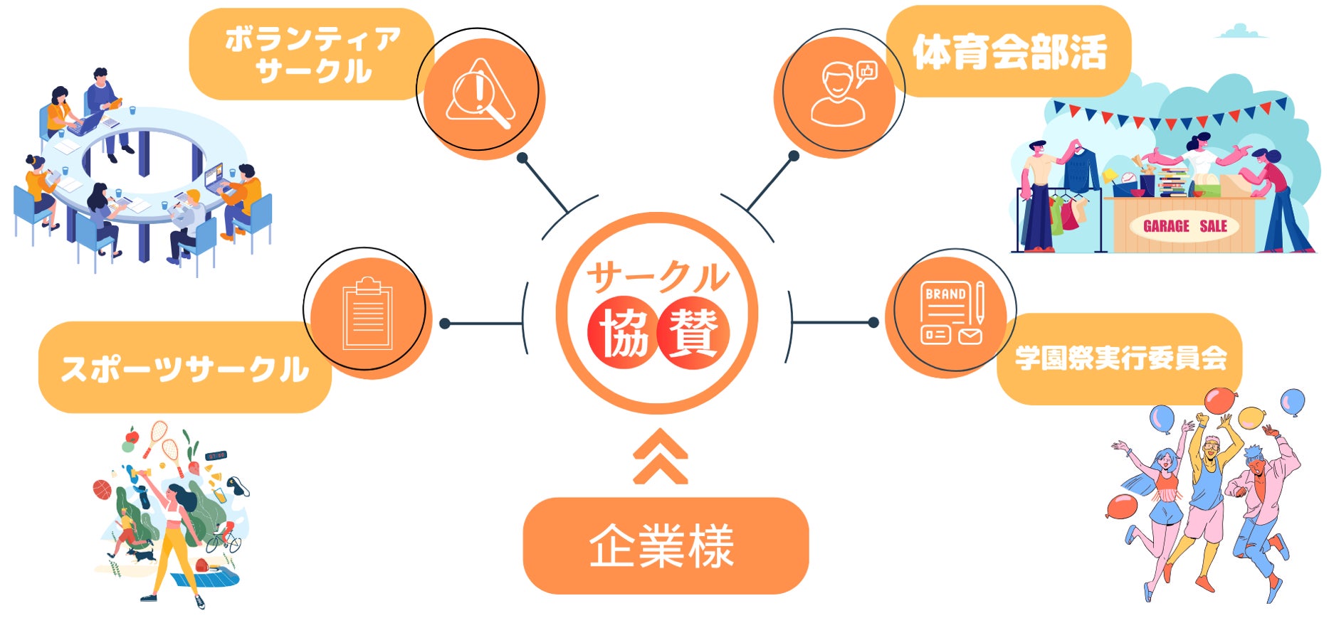 サークル協賛は、「協賛したい企業」と「協賛のほしい大学サークル」をつなげるプラットフォームです。