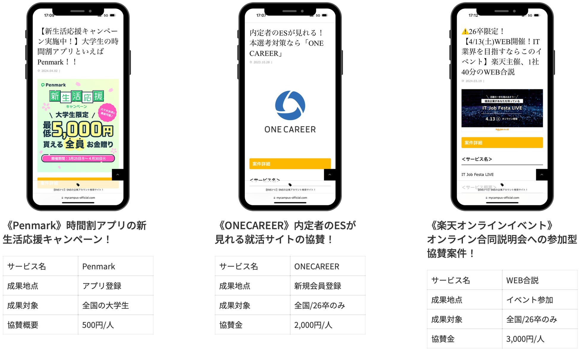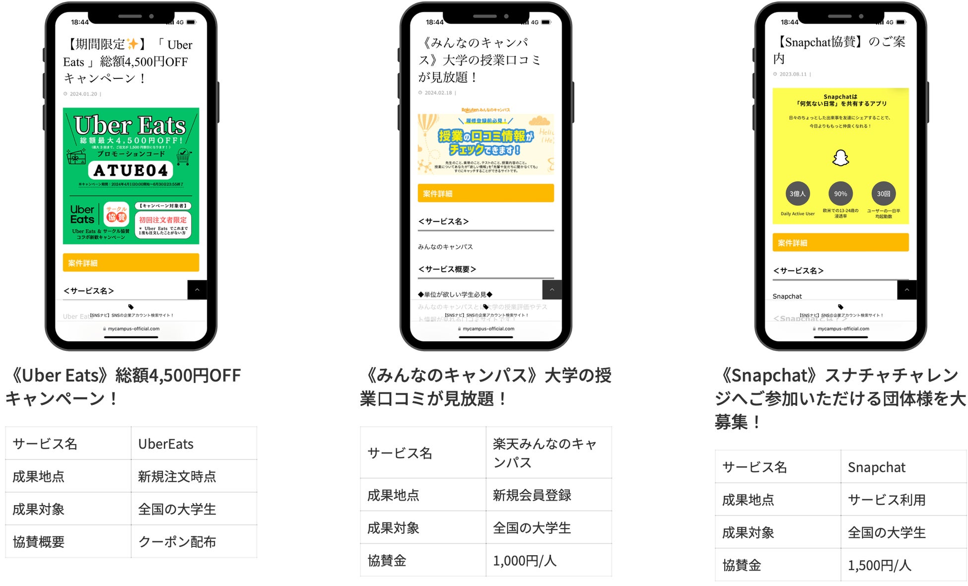 (原則、学生に不利益が生じる内容の協賛案件はNGとさせていただいております。)