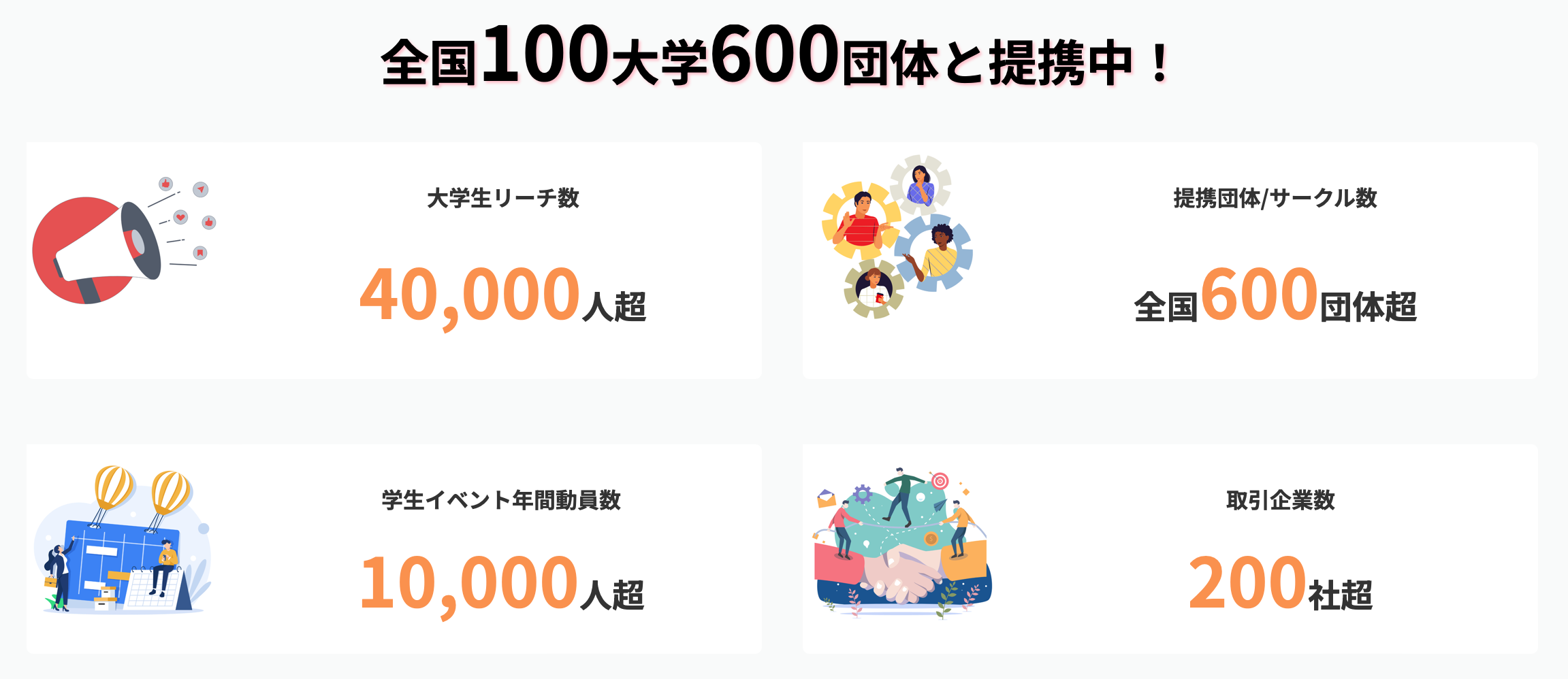 サービス開始より1周年を迎えた「サークル協賛」が全国100大学800サークルと提携