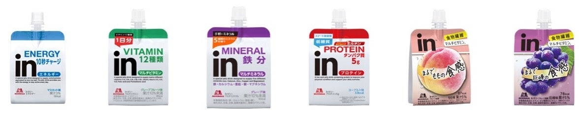お選びいただけるinゼリーは、エネルギー、マルチビタミン、マルチミネラル、プロテイン、フルーツ食感2種の合計6種類です(お届けは1ケース単位で選択いただきます)。