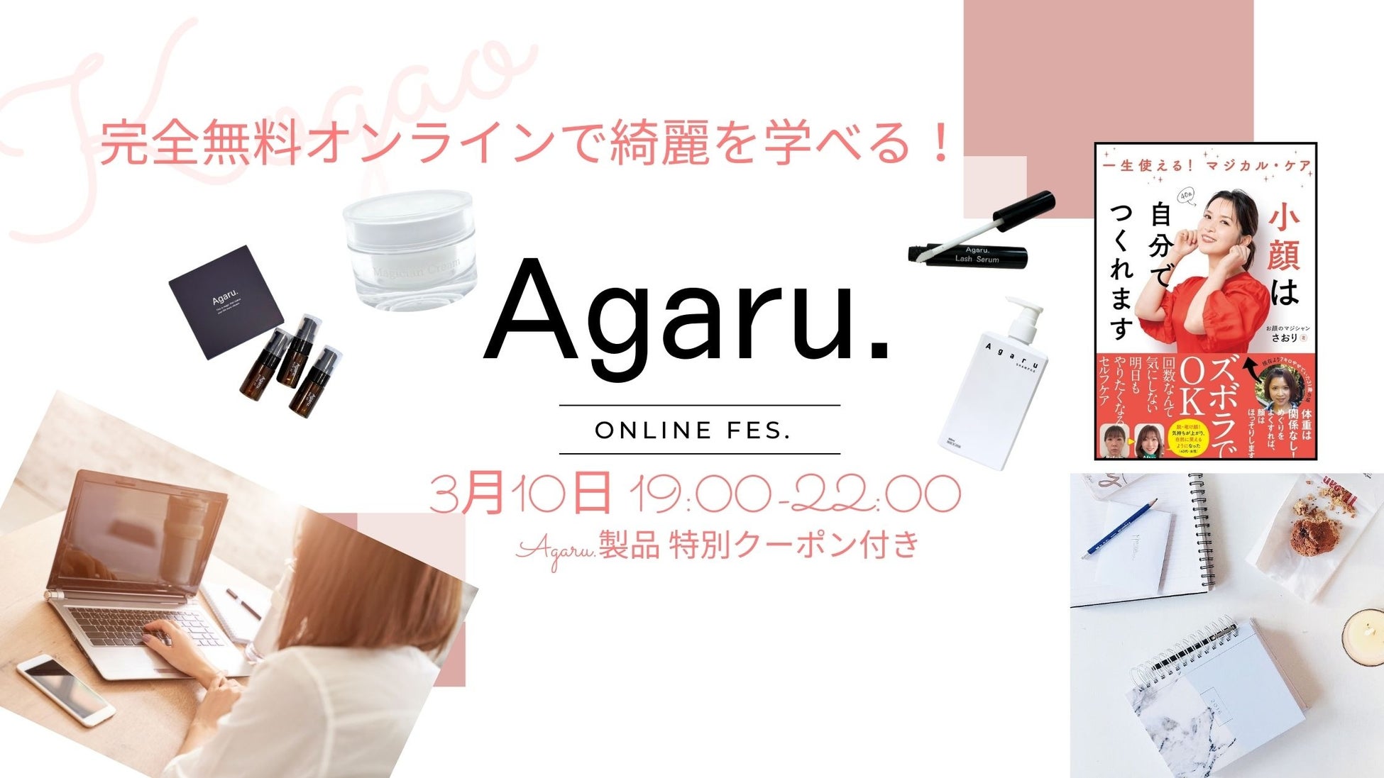 株式会社小顔(本社:東京都目黒区/代表取締役:吉村 沙織)が、2025年3月10日(月)に、美容の専門家によるセルフケア講座と話題の化粧品「Agaru.」の特典をお届けする、1日限定オンラインフェス「Agaru.オンラインフェス」を開催いたします。