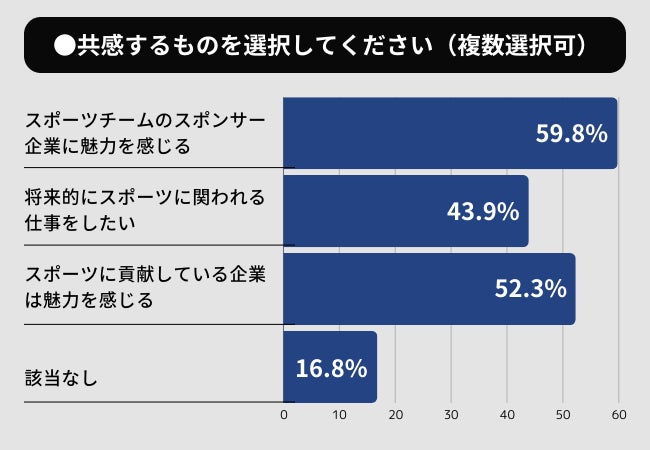 スポーツチームのスポンサー企業やスポーツに関する事業を展開する企業など、スポーツに関わる・貢献している企業に対して魅力を感じる人は8割を超えました。体育会学生ならではの調査結果であると考えます。