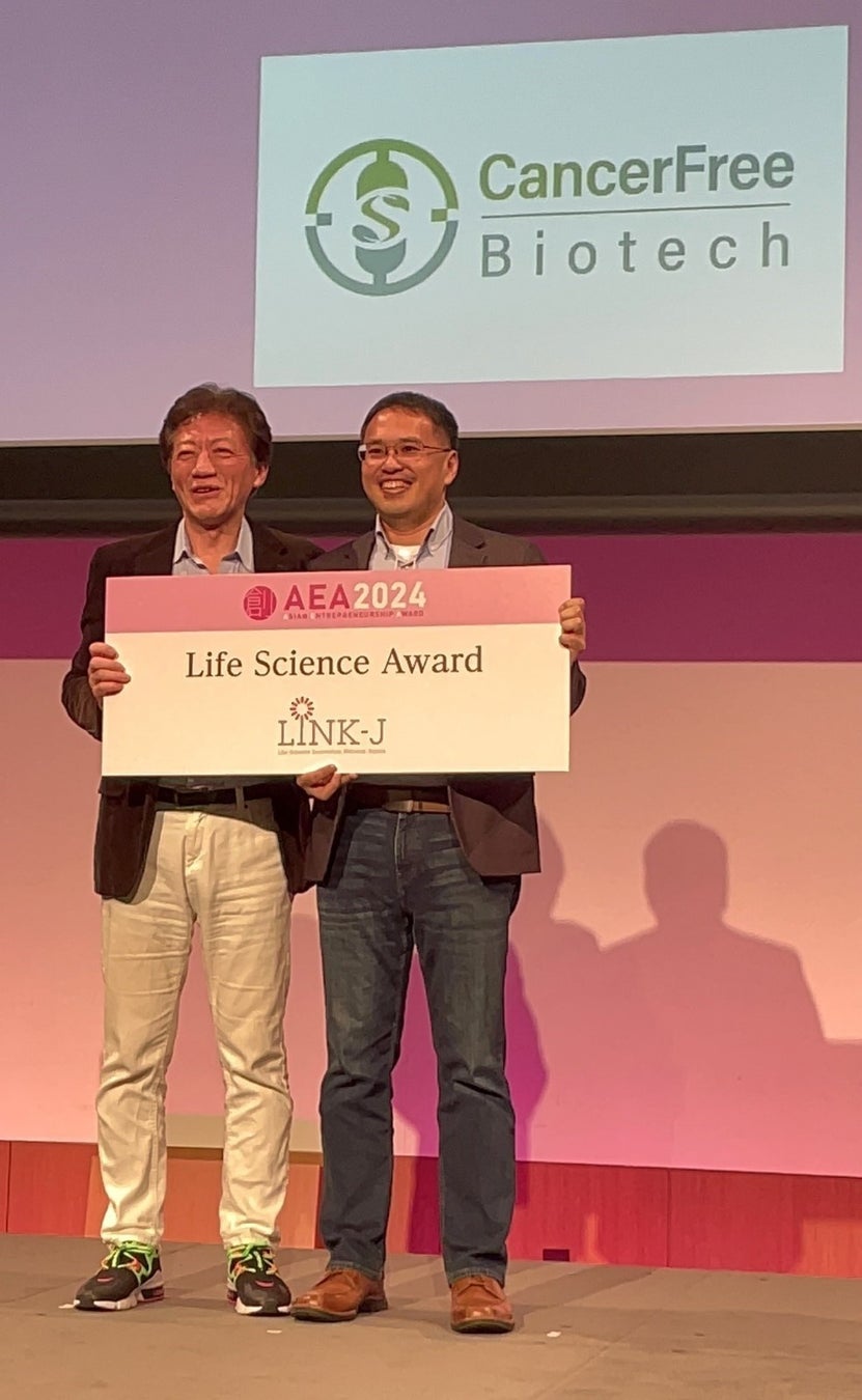 今回のコンペティションは完全推薦制であり、公立または民間、学術機関のアクセラレーターやインキュベーターからの推薦を受けなければ参加資格が得られません。Cancerfree Biotechは日本貿易振興機構(JETRO)から推薦を受け、参加することができました。今年は13カ国から64社が応募し、審査によって6社が決勝に進出しました。決勝ではCancerfree BiotechのCEOである陳柏翰氏が患者重視の最高ビジョンと独自技術によるがん患者支援の豊富な事例を紹介し、1500名以上のがん患者を支援した実績が国際的に高く評価されました。この結果、LINK-J (Life Science Innovation Network Japan) から唯一生命科学関連の賞であるLife Science Awardを受賞しました。この技術は生命科学分野で大きな突破口となっています。