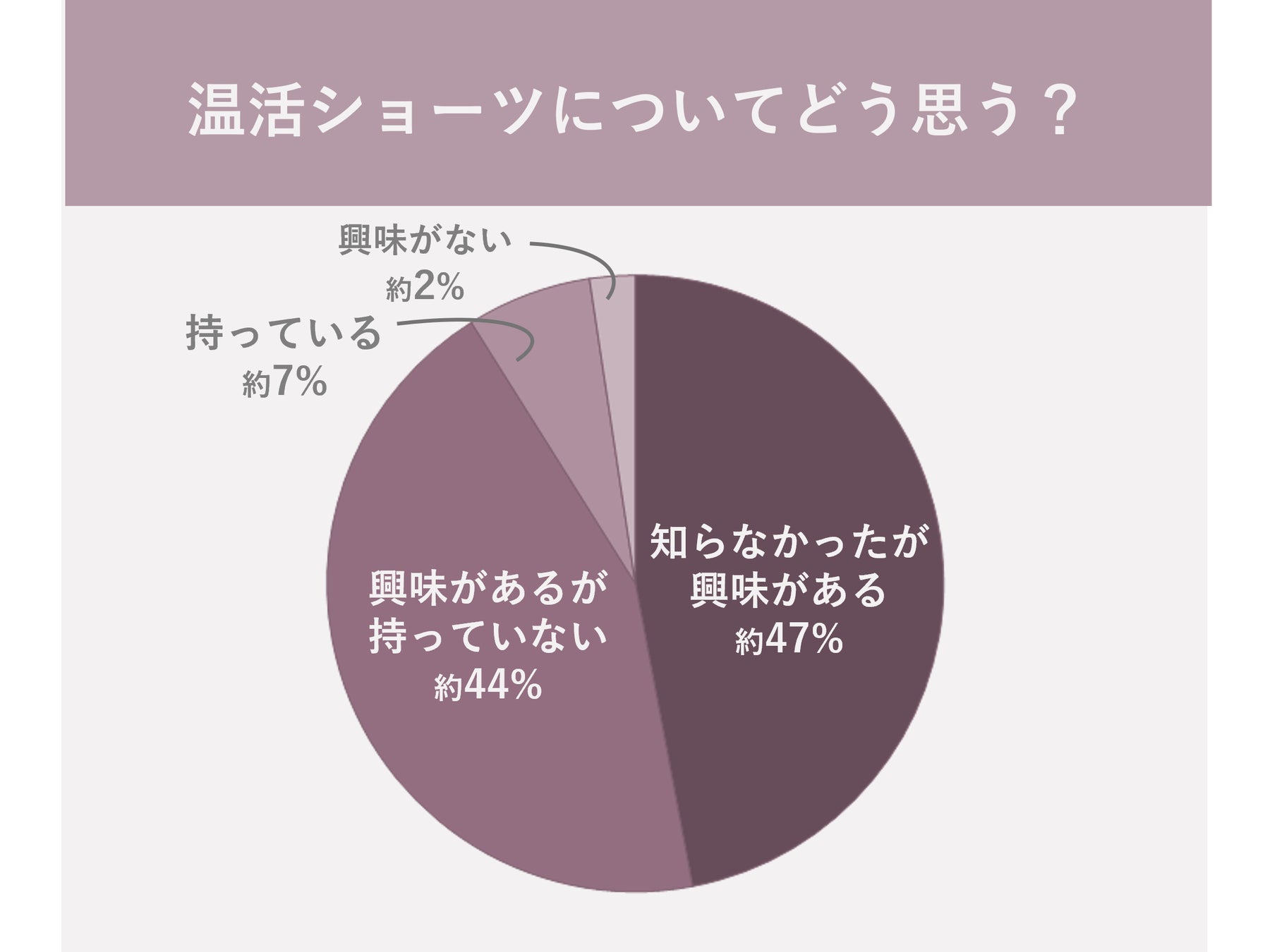 温活ショーツに興味を持っている方が約91%と多い反面、約47%の方が知らなかったと回答したことから、温活ショーツの認知度が低いことが分かります。