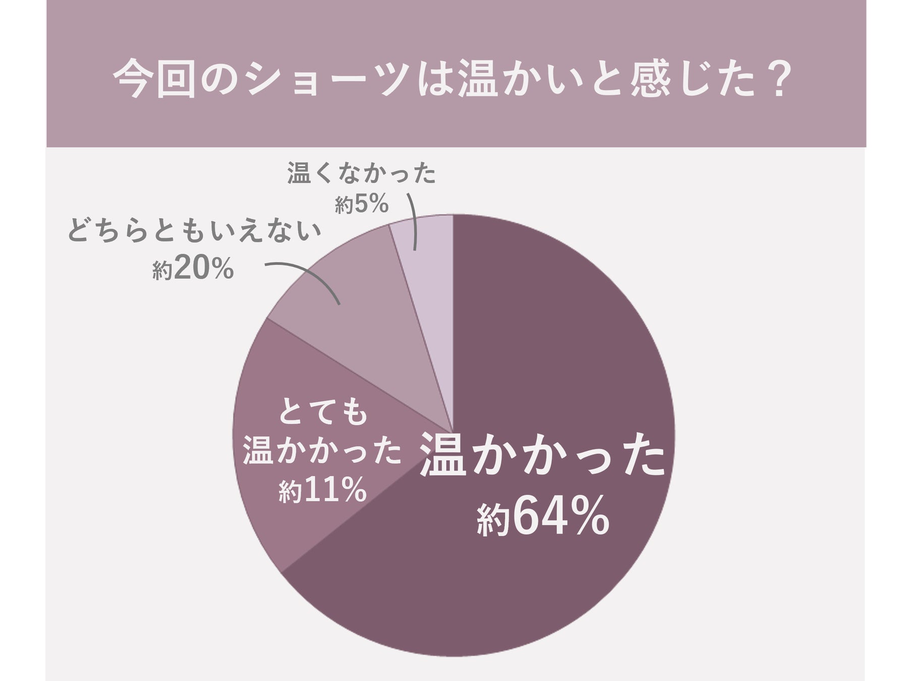 また、実際に温活ショーツを持っている方の割合は約7%のみという少ない結果に対し、サニタリショーツを持っている方の割合は約84%という非常に高い結果でした。温活ショーツの種類はサニタリショーツほど多くはなく、実際に目にし、手に取る機会が少ないことも理由の一つかもしれません。