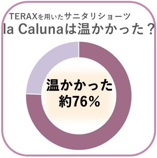 今回モニターの方に提供したla Caluna サニタリショーツは、下腹部に自社開発素材「TERAX」を用いており、遠赤外線効果で接触部分を温めることを目的とした、温活/サニタリーショーツです。「TERAX」を用いることで、冷やしたくない下腹部を保温しつつ、柔らく優しいさわり心地で洋服にも響きにくくなっています。