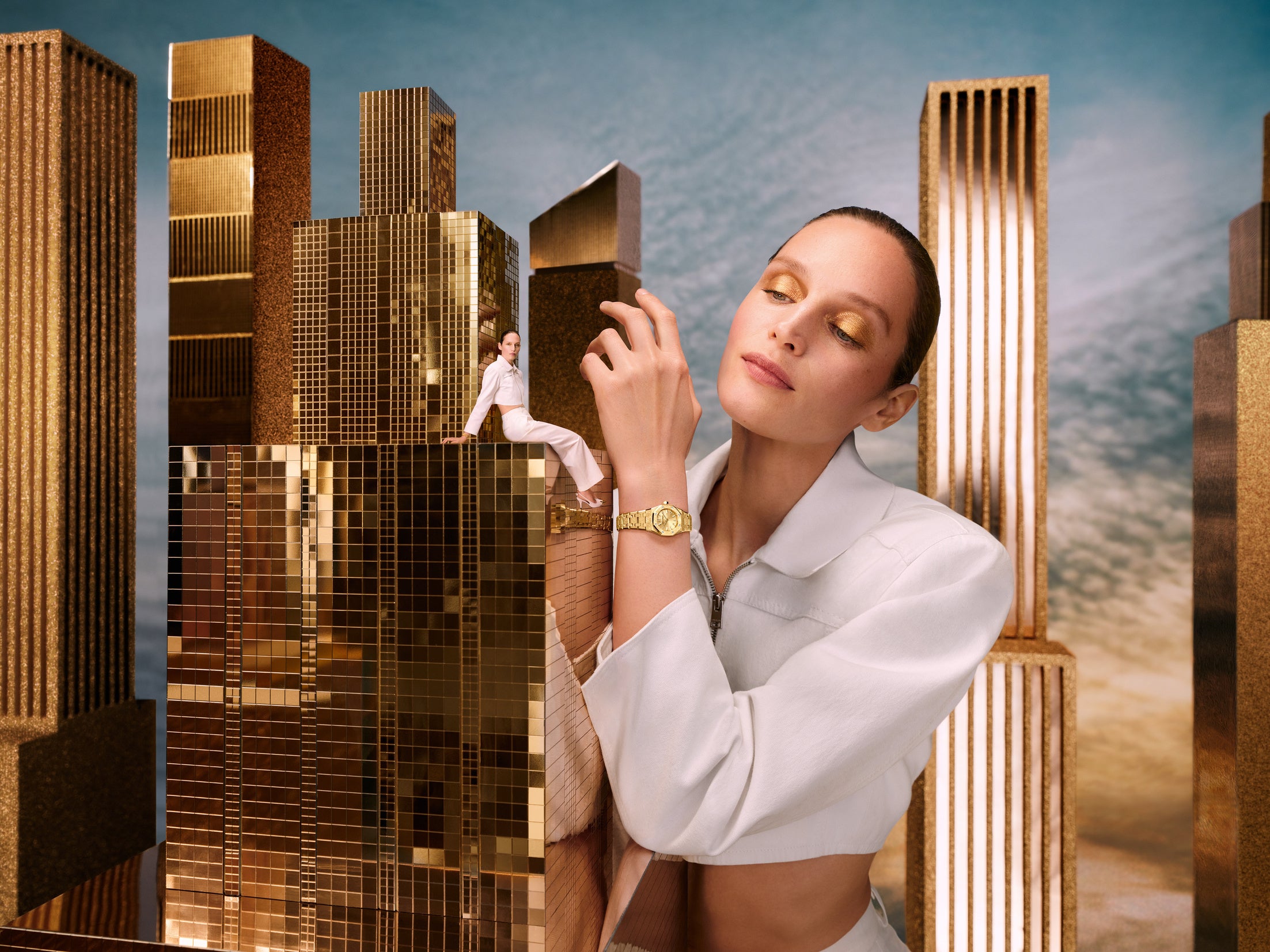 21世紀の幕開けを飾るクリエイティブな「ミニ ロイヤル オーク」にインスパイアされた、最新の「ロイヤル オーク ミニ フロステッドゴールド クォーツ」は伝統と現代性をパワフルなデザインで融合させ、グラムールな魅力を光の中に煌めかせています。