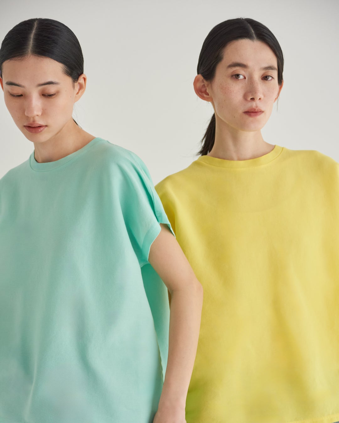 滋賀県北西部に位置する滋賀県高島地域。江戸時代から「高島ちぢみ」と総称される「綿楊柳」 「綿クレープ」と呼ばれる薄手の衣料向け綿織物生地の産地としてその名を馳せてきました。 この高島ちぢみを使用した「楊柳」を発想の転換により横縞に使用したものがPlantationの オリジナル素材である「YOORYUU」です。 生地に適度な張り感と、プリーツのような弾力、バネのようなリズミカルな動きをうみ出しました。 デザインされたシルエットを維持しつつ、動くたびにリズミカルに上下する様や、 光を程よく通す素材感が相まって独特な雰囲気を持つモダンな一枚です。