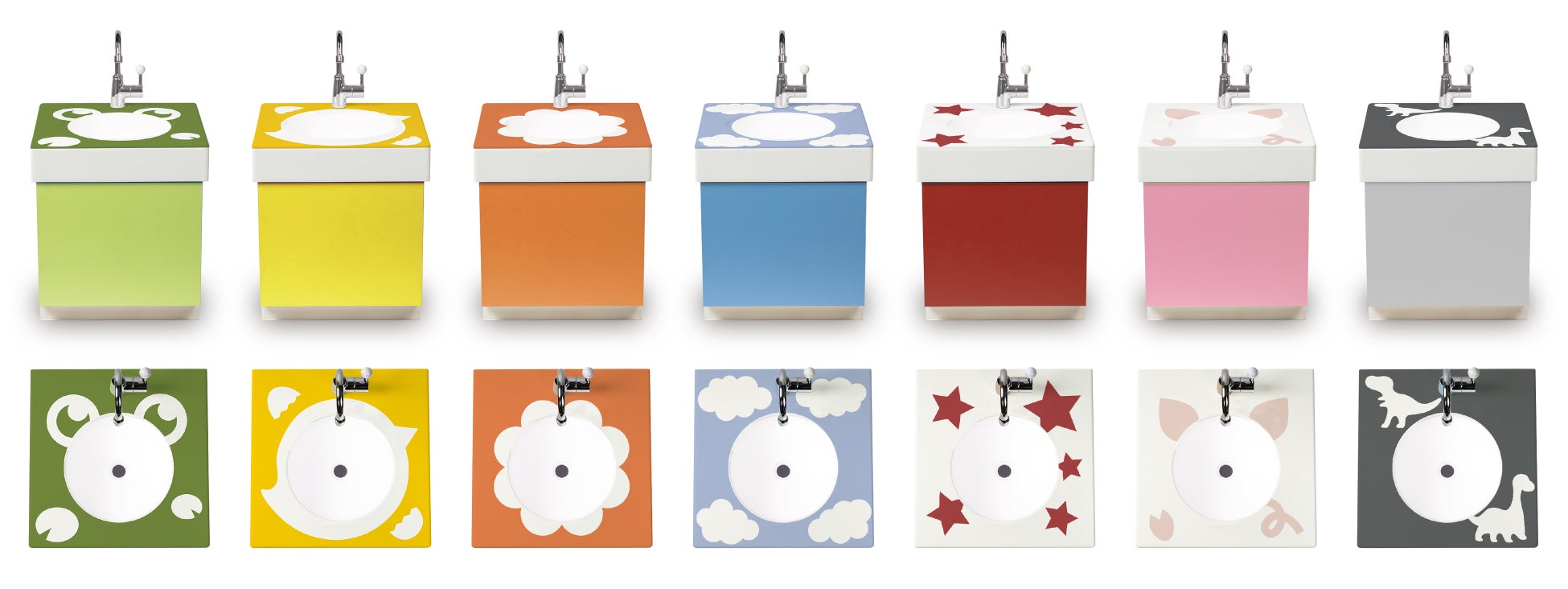 「tetote WA」はtetote EGAK(えがく)シリーズ(※)をベースに商業施設・オフィスビル・公共施設・医療施設のトイレに施設のイメージにあったオリジナルデザインで幼児用の洗面台の設置をご提案する商品です。