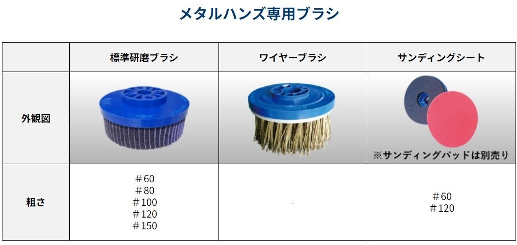 標準の番手ブラシの他に、強研磨用のサンディングシート、酸化被膜取り用のワイヤーブラシがございます。