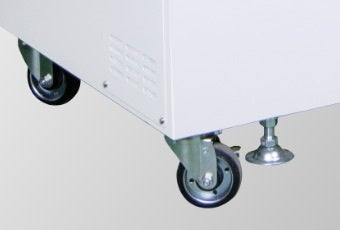 キャスターで移動は簡単です。バリ取りをしたい現場に動かし、200V電源に繋いですぐ利用できます。