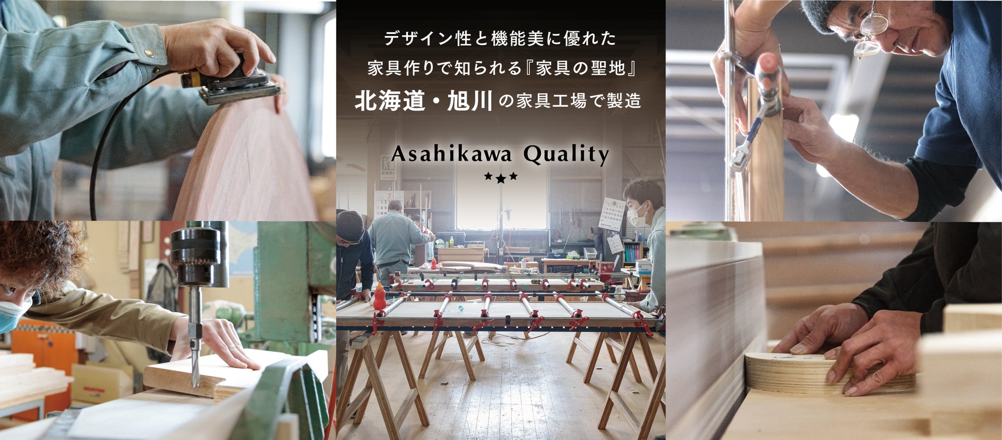 木工の名産地・北海道旭川で製造。無垢のタモ集成材のぬくもり、細部まで仕立てた家具としての完成度が魅力です。