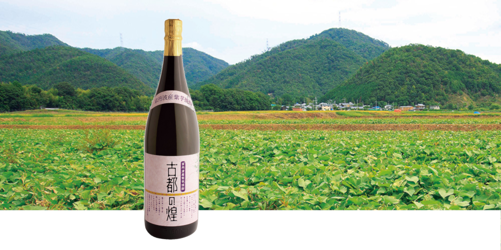 京都府亀岡市産紫芋(品種名:パープルスイートロード)を契約栽培で100%使用し、亀岡盆地の中央を流れる柔らかな水流、深い霧と昼夜寒暖差の大きい風土、大自然の澄んだ空気、これらの恩恵の中で仕込んでおります。