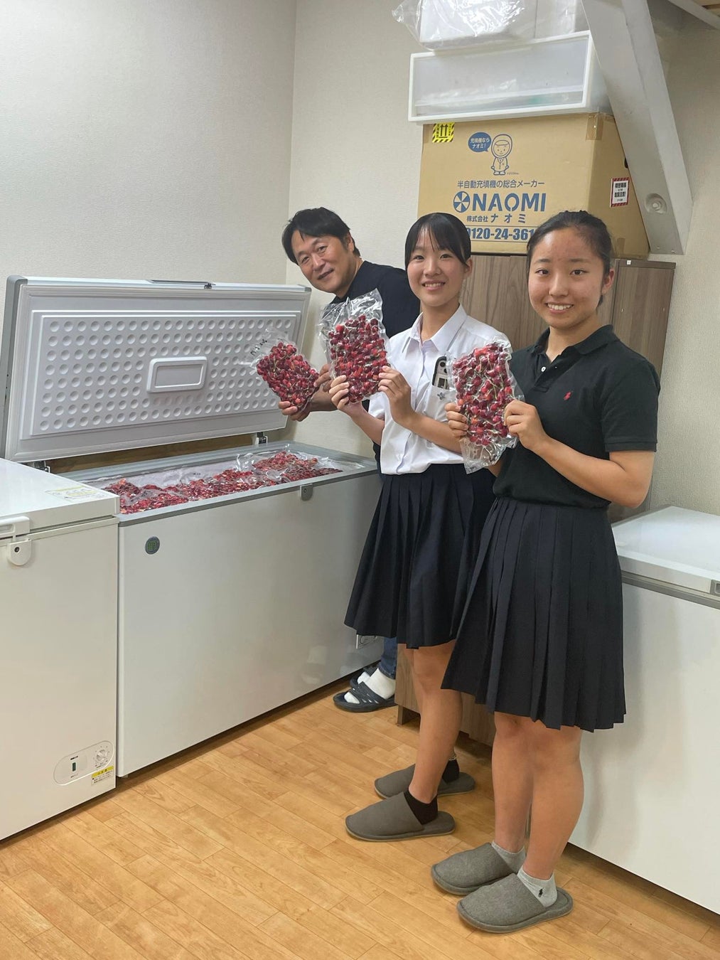 先日、山形東高等学校の女子高校生2名から農作物のアップサイクルについて取材をいただきました。探究活動という授業の一環で取材して発表するとのことでした。アップサイクルとは、廃棄予定であったものに手を加え、価値をつけて新しい製品へと生まれ変わらせる手法です。別名「クリエイティブ・リユース(創造的再利用)」と呼ばれており、素材や形などの特徴を生かしてより良いものへと作り変えます。今回取材をいただいた地元・山形のニュース番組を見て事前にいろいろ調べられており、とても感心しました。まだまだアップサイクルという考え方そのものの認知度が低いなか、未来の顧客ともいえる若者に向けて、農作物のアップサイクルの意義や、持続可能な農業についてお話をさせていただきました。