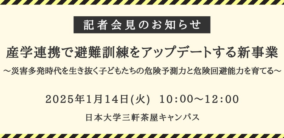 産学連携で避難訓練をアップデートする新事業 記者会見のご案内 ~災害多発時代を生き抜く子どもたちの危険予測力と危険回避能力を育てる~