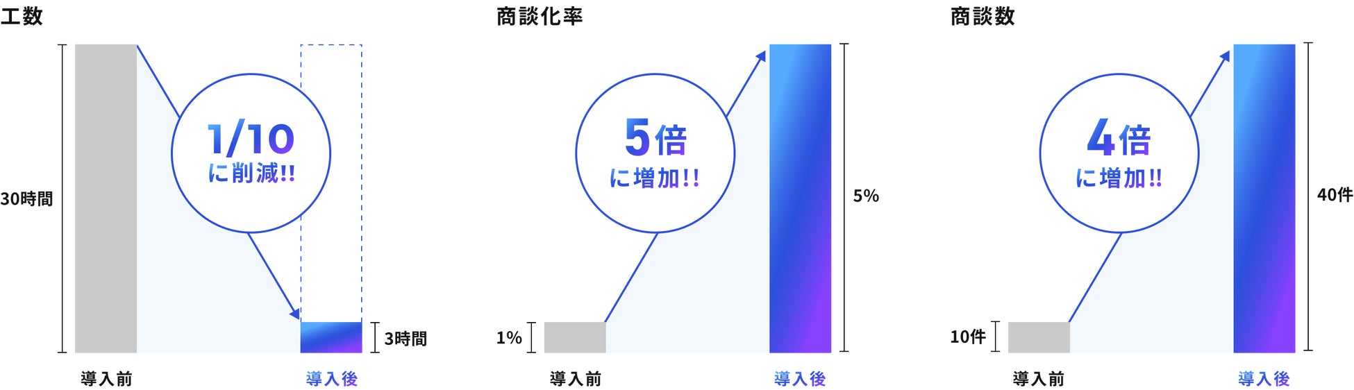 リストからの商談化率が1%から5%に大きく改善!リスト作成工数はこれまでの1/10に!