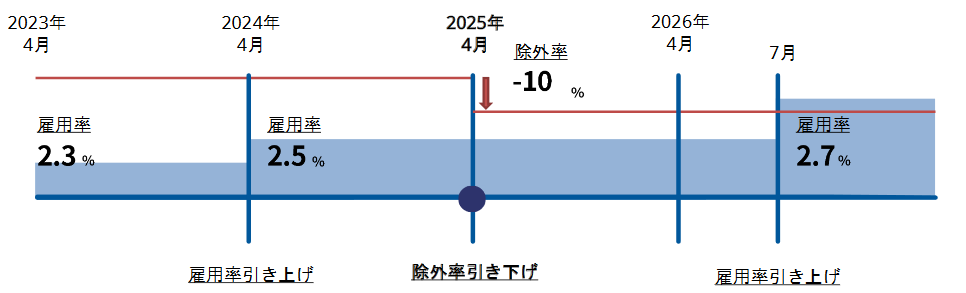 2025年には除外率の10%引き下げが決定されており、これによって鉄道業や医療業などの除外率適用業種は、雇わなければならない障がい者数が増加します。