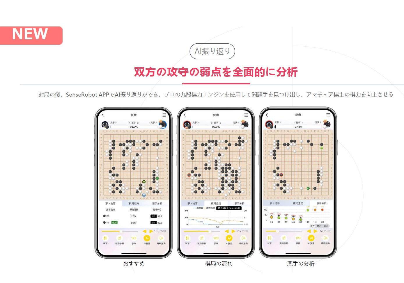 対局したデータを、SenseRobot APPでAIレビューができます。(※別途クレジット必要)