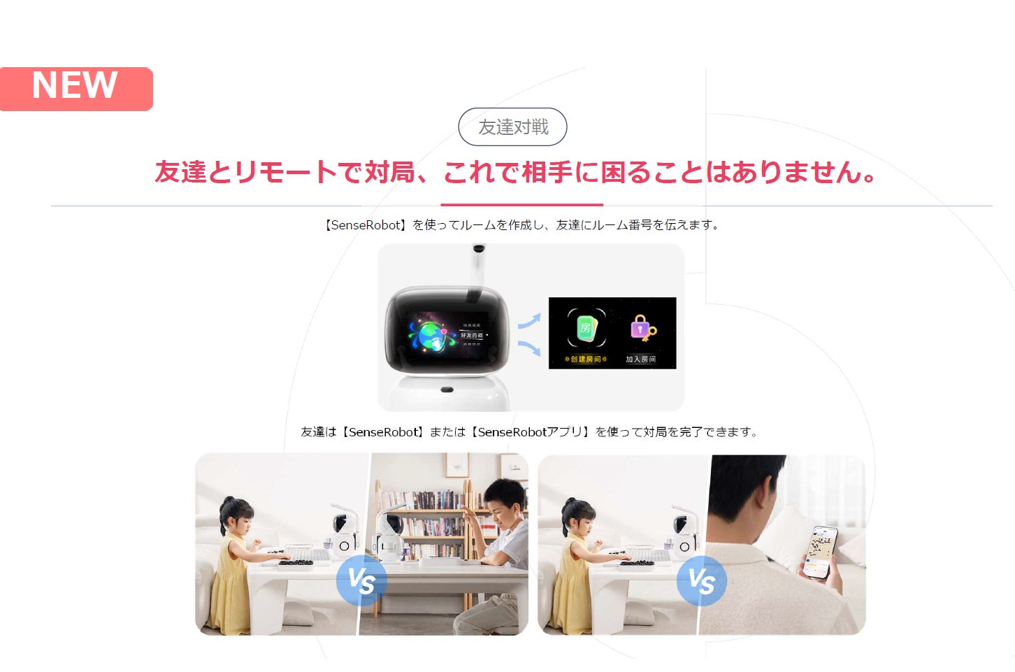 SenseRobot同士、またはSenseRobotとSenseRobotアプリを使ってオンラインで対局が可能。