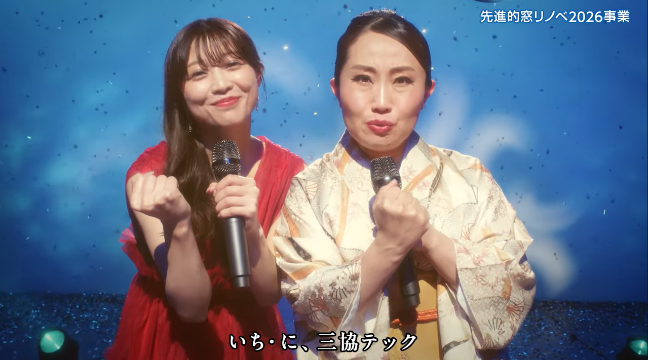 情熱的な歌声で“窓リフォームの大切さ”を歌い上げるというユニークな設定で、窓の断熱性能向上や省エネ効果をコミカルに表現しています。