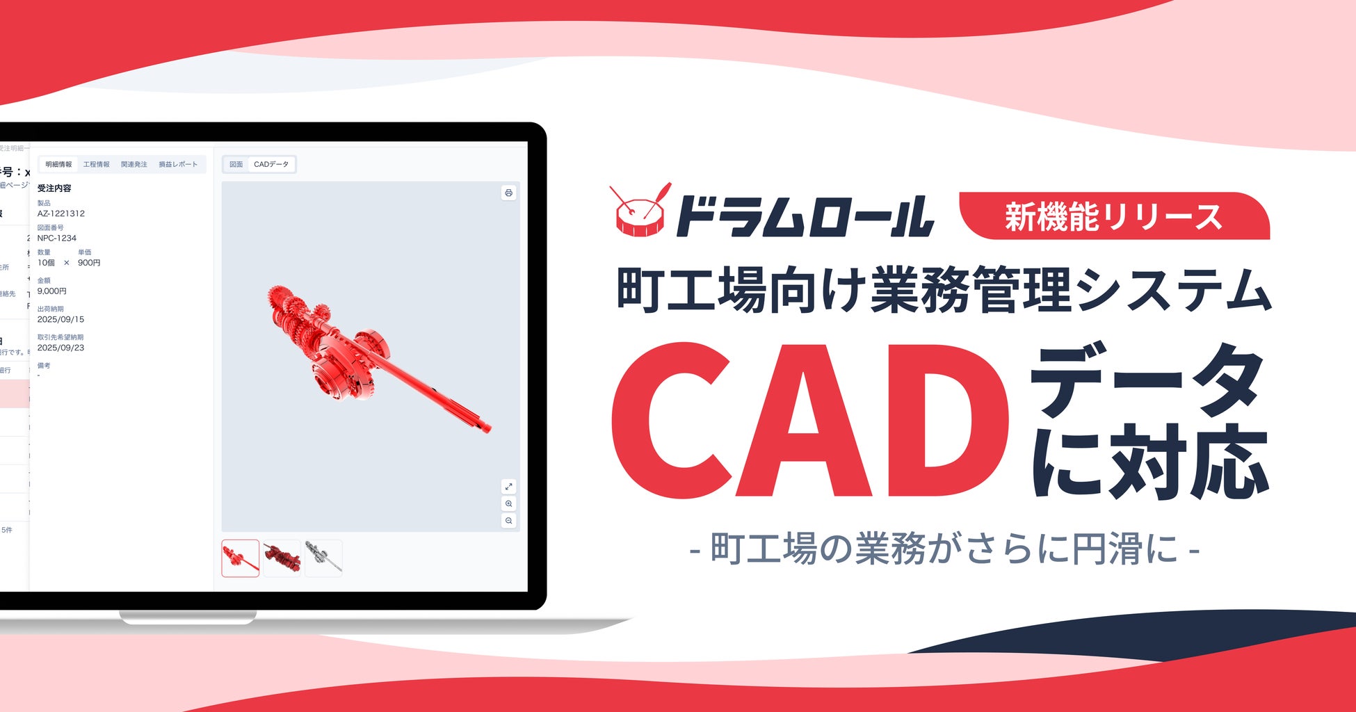 図面も受注も製造も、これひとつ。町工場向け業務管理ドラムロール、CAD対応で町工場DXを加速!