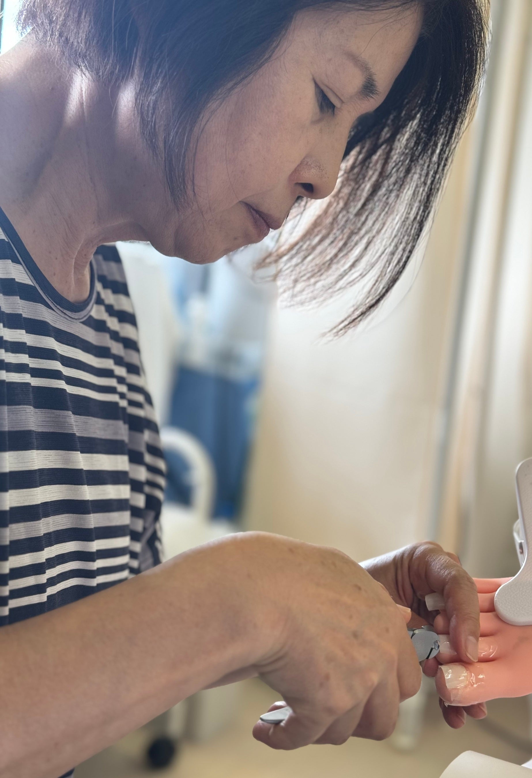 内容:講義ではフットケアの目的や高齢者の足部や足の爪の実態と要因、フットケアで備えられること等についてオンラインにて学んでいきます。実技ではニッパー型爪切りを使った適切な足の爪の切り方、爪ヤスリの使い方などの基礎の足爪ケアの実践を行います。