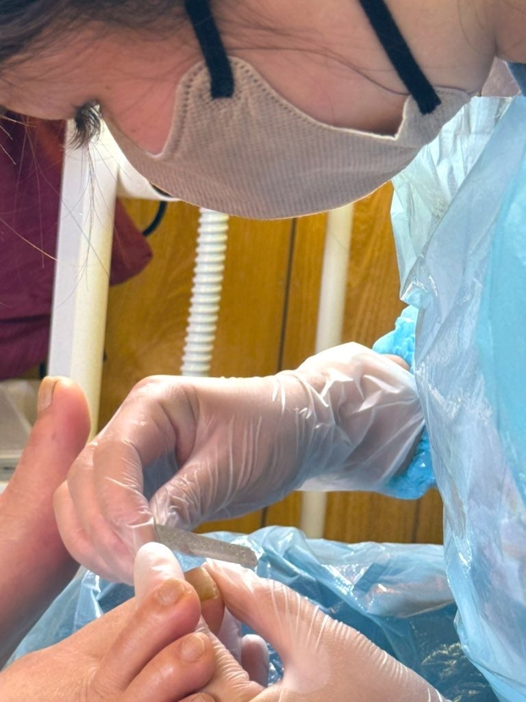 病状がない足の爪は病院では切ることができません。また、足の爪を切ってくれる所や足先の角質をケアしてくれる所に行くまでは片道2時間以上もかかる地域に暮らしている独り暮らしの高齢者もいらっしゃいます。全ての人がおひとりでその場所に行けるわけではありません。このような環境の中で暮らす高齢者は全国各地にいらっしゃるのではないでしょうか。