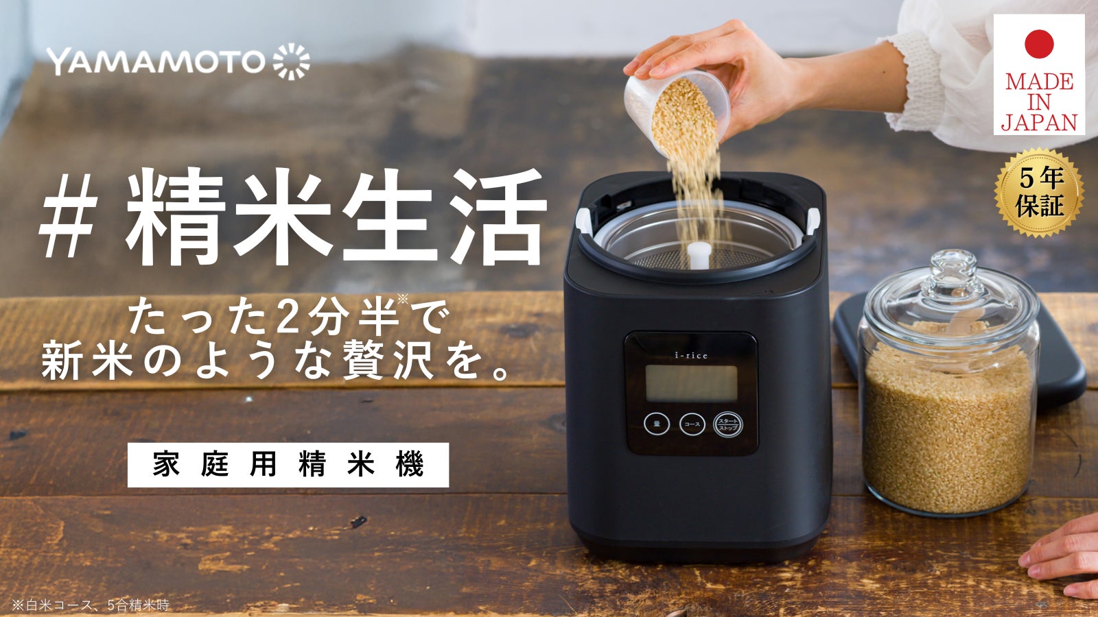 山本電気は家庭用精米機「i‑rice」を8月20日よりMakuakeで先行販売開始。“たった2分半で新米のような味わい”を叶える新習慣を提案。