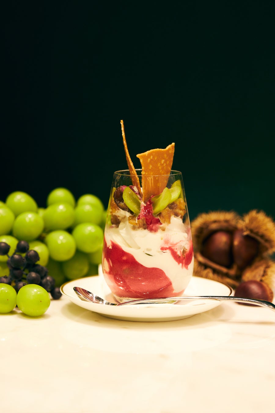 旬のシャインマスカットと栗を贅沢に使用したアイスクリーム。松屋銀座店だけの限定メニューです。