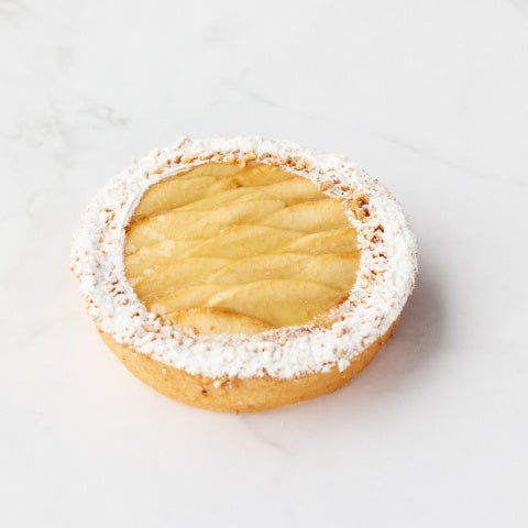 なめらかなアーモンドクリームをふんだんに使ったアーモンドタルトの上に、フレッシュなりんごのスライスを敷き詰めて焼き上げました。お子様から大人まで、どなたにも喜んでいただけるタルトです。