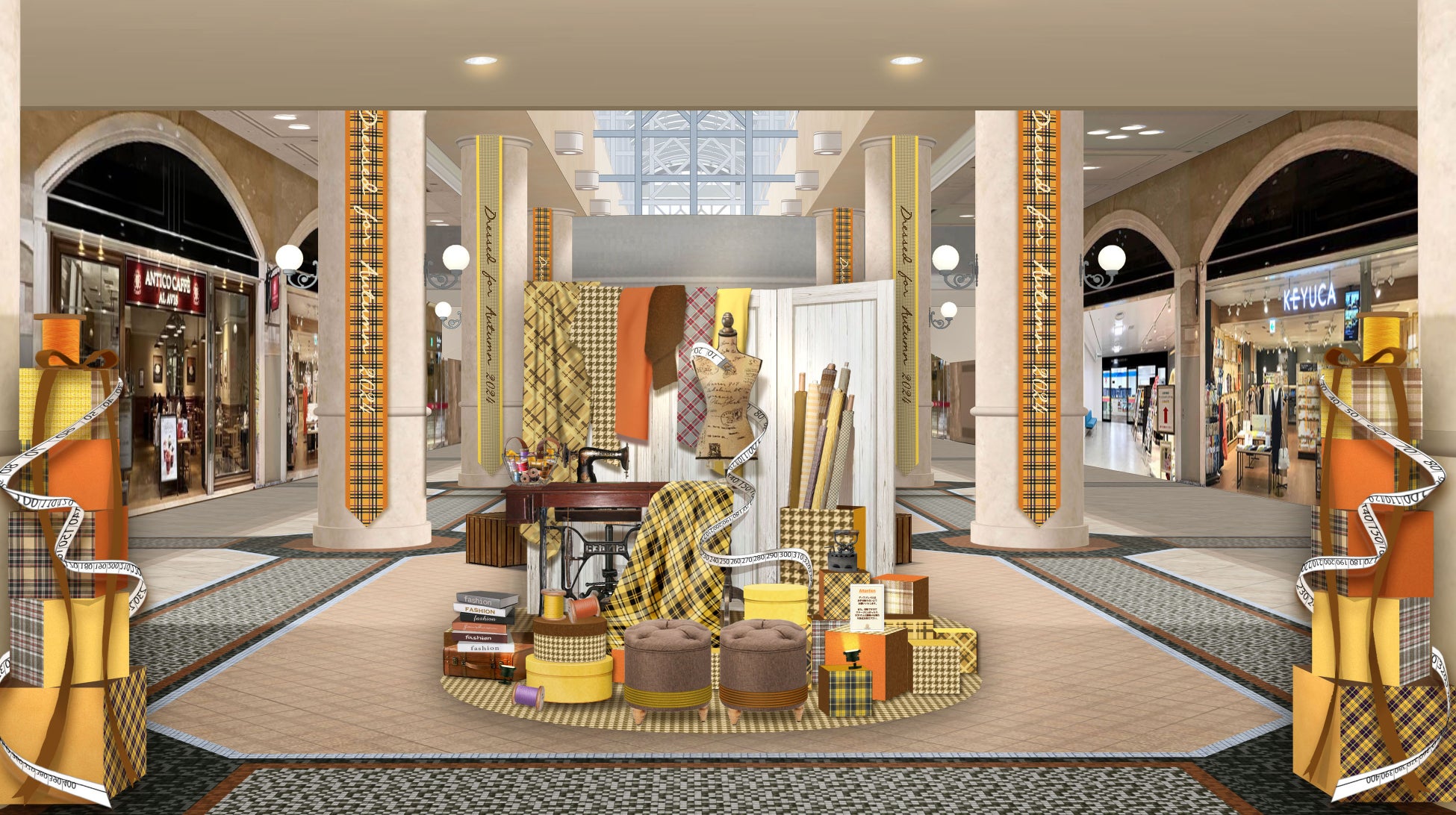 今秋のテーマは「Dressed for Autumn –秋をまとおう-」ということで、身にまとう洋服や、旬の味覚を楽しむことで秋の訪れを感じていただきたいというメッセージを込めています。秋らしいカラーやチェック柄を用いた秋の洋服を仕立てていく様子を表現しています。