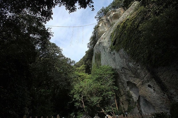 花窟神社(花の窟神社)は日本書紀にも記されている日本最古の神社といわれており、古来からの聖地として今に続く信仰はあつく、全国から多くの参拝者が訪れます。花の窟では年2回、例大祭を行い、神々に舞を奉納し、日本一長いともいわれている約170メートルの大綱を岩窟上45メートル程の高さの御神体から境内南隅の松の御神木にわたす光景は圧巻です。
