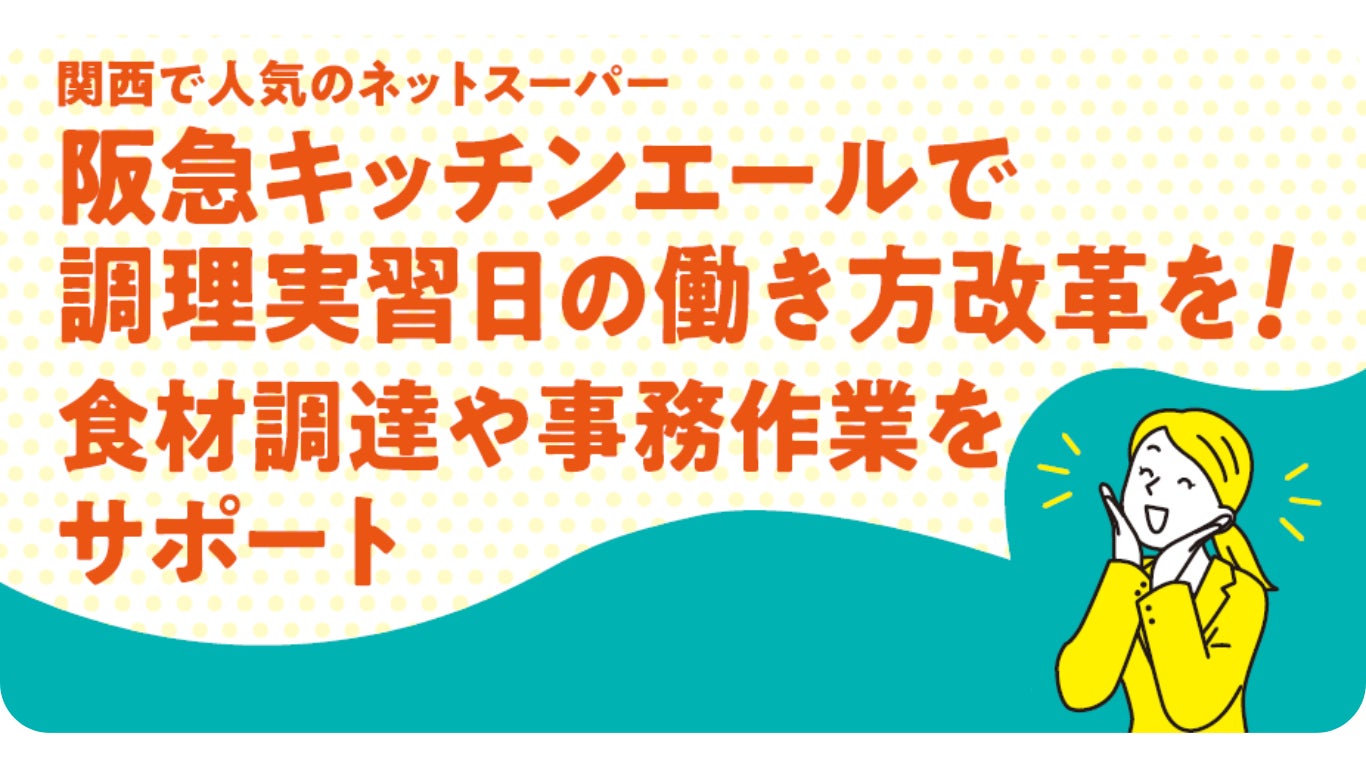 京阪神エリアの食品宅配会社阪急キッチンエールが、お届けエリア内の中学校・高校に向けに調理実習用の食材を配達サービスを実施。教員の事前準備にかかる負担を減らすお手伝いをいたします。