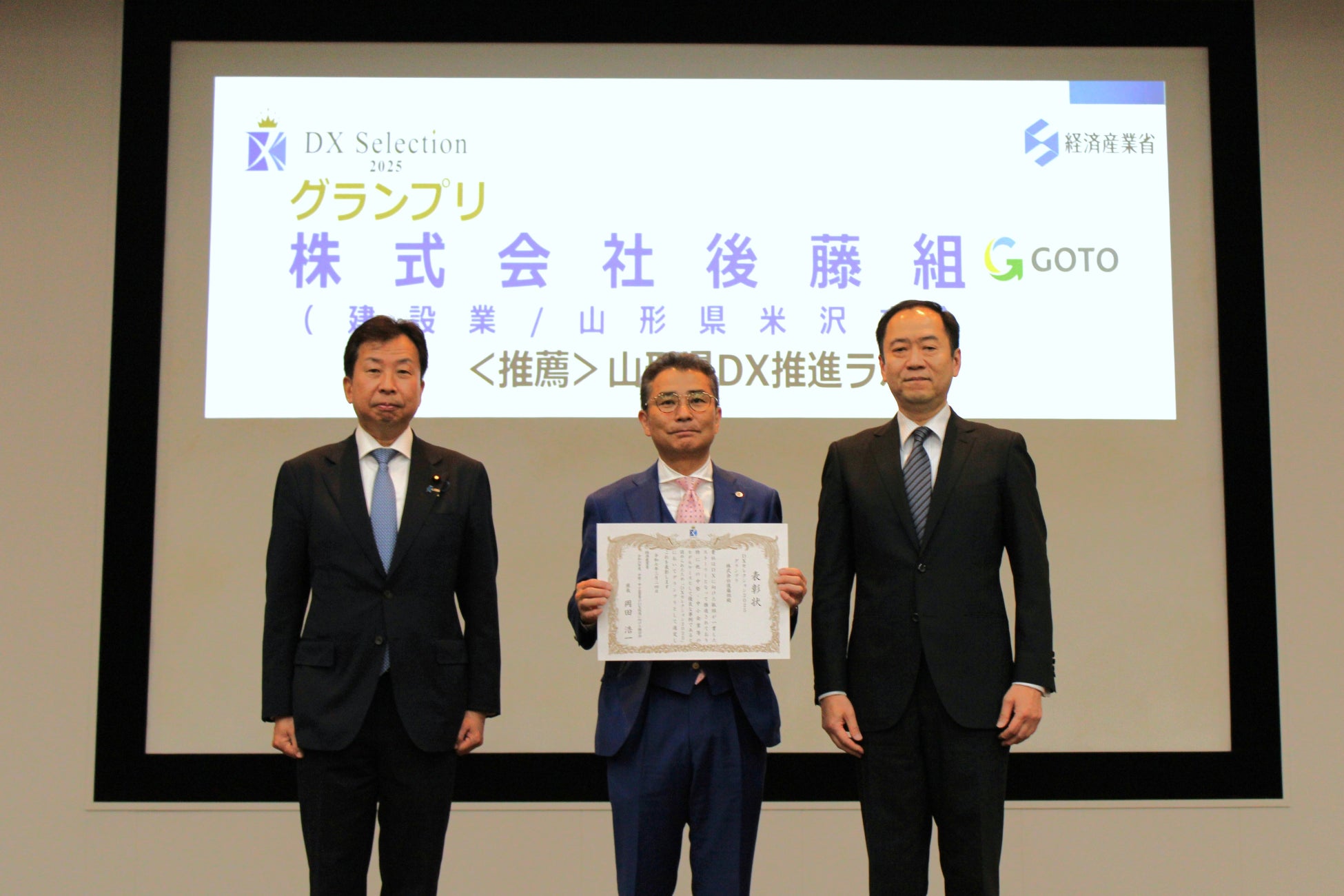 株式会社後藤組(本社:山形県米沢市、代表取締役:後藤茂之)は、経済産業省が主催する「DXセレクション2025」にて、最高賞であるグランプリを受賞しましたことをお知らせします。