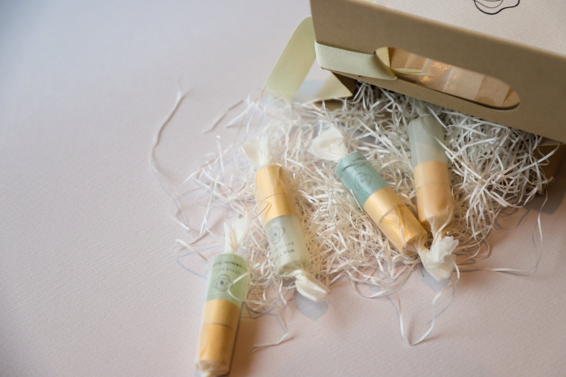 ミニフレグランススプレーは、それぞれキャンディのようなラップに包まれ、可愛いクラフト調のボックスに入って、ちょっとしたプレゼントやギフトにも最適です。