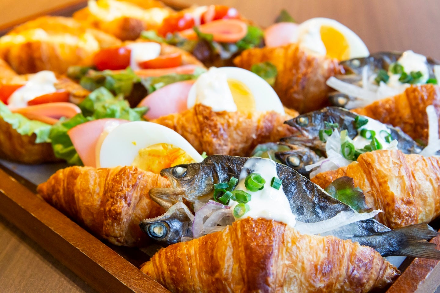ヤマメの干物を挟んだクロワッサンサンド、餅つき大会でついたお餅の雑煮が人気