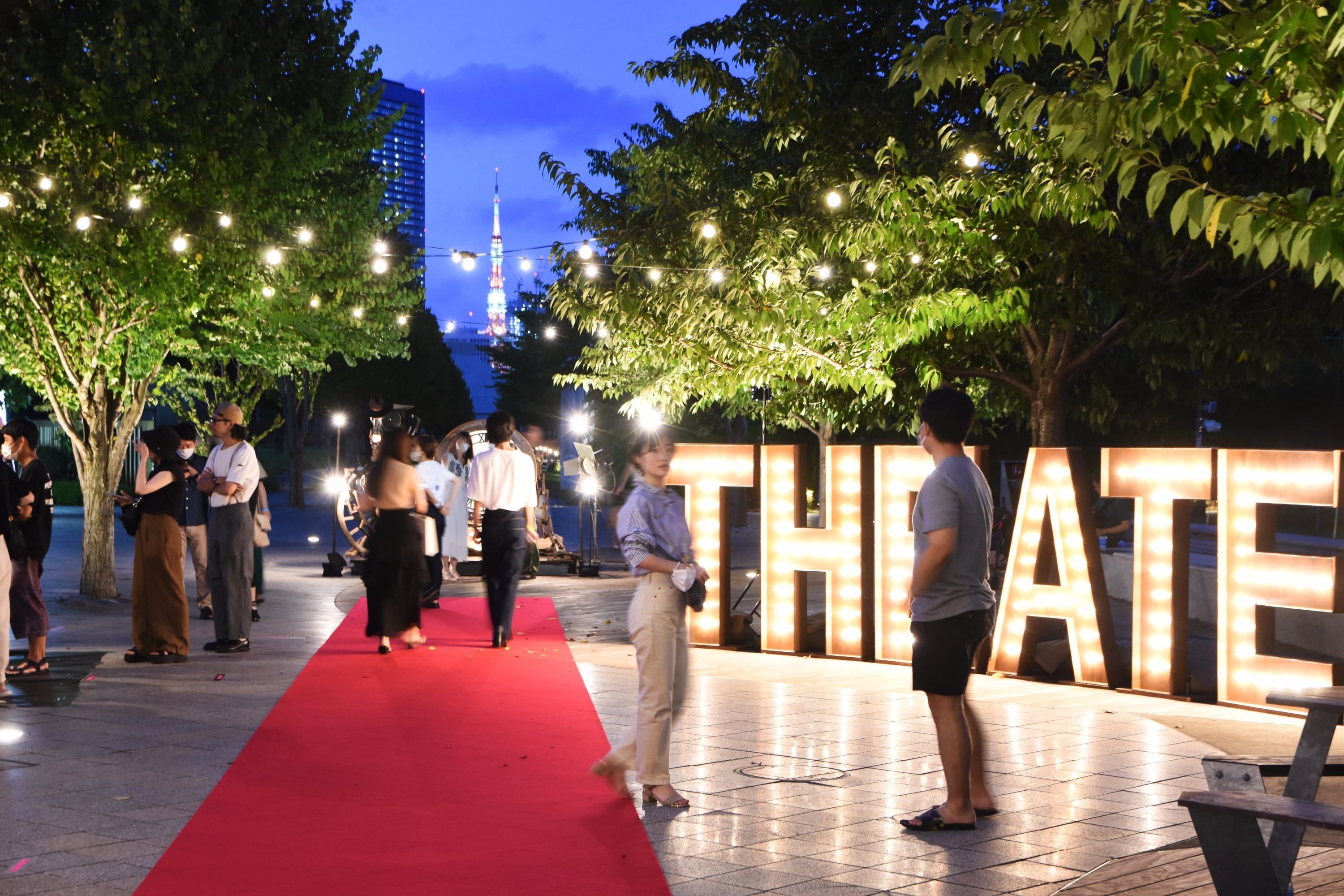 今年で12回目の開催となる「品川オープンシアター」は、映画の世界に飛び込んだような会場装飾と、東京タワーに向かって伸びる鮮やかなレッドカーペットが毎回話題の野外シアターイベント。夜空の下、広々とした芝生広場で思い思いにくつろぎながら巨大スクリーンで映画作品が楽しめます。