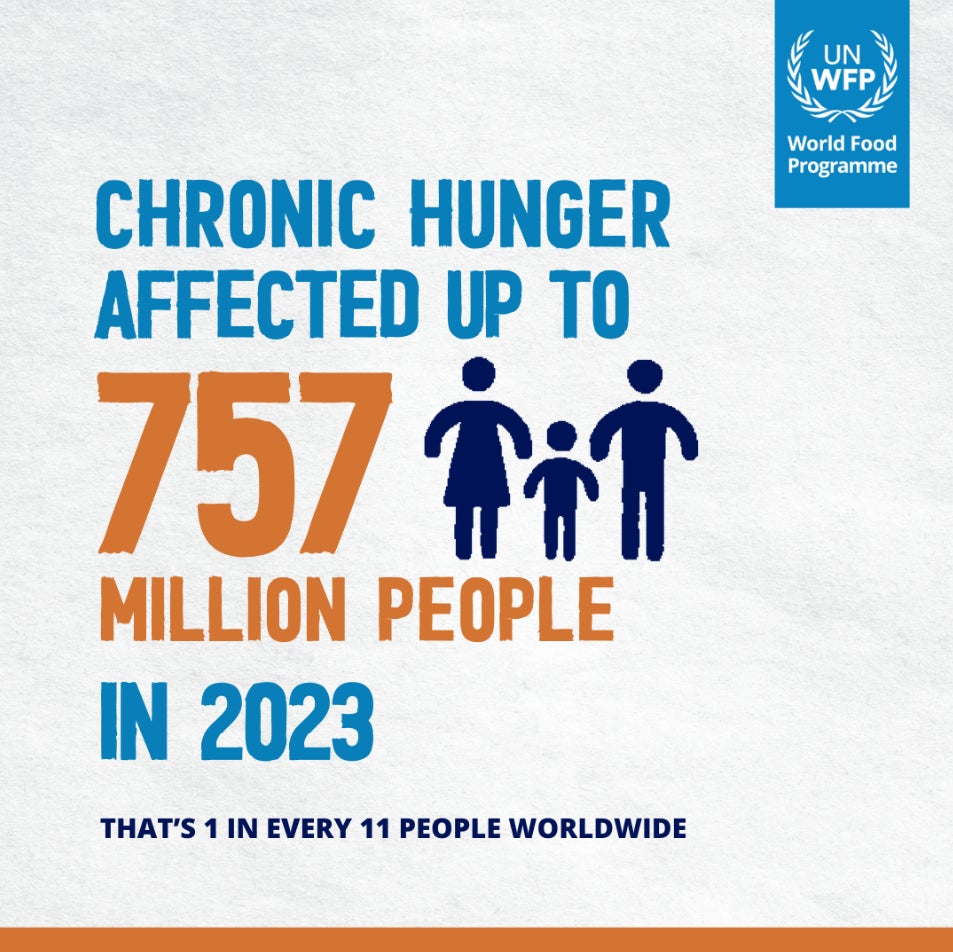リオデジャネイロー国連5機関が本日発表した最新の「世界の食料安全保障と栄養の現状(SOFI)」報告書によると、2023年に飢餓に直面した人は最大約7億5,700万人で、これは世界では11人に1人、アフリカでは5人に1人に相当します。